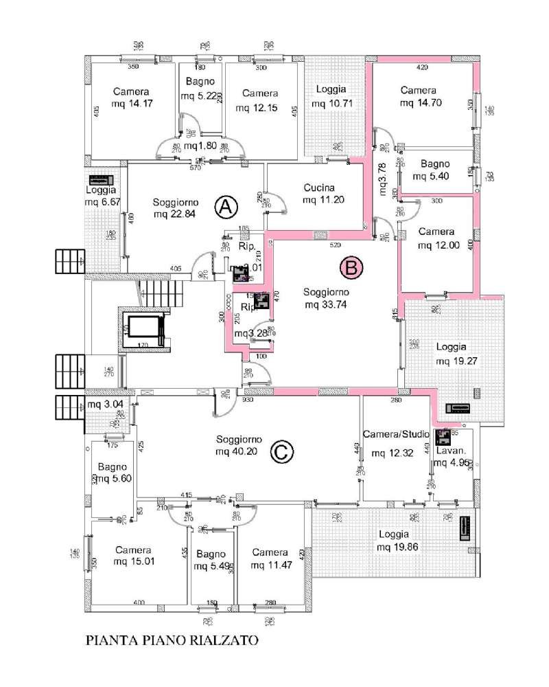 Soluzione al piano Terra Tipologia B : Trilocale composto da soggiorno con loggia di 19 mq, zona cottura, 2 camere, bagno, ripostiglio, disimpegno, box 282.000